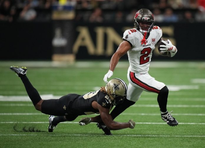 The Buccaneers received the second-half kickoff and drove to a first-and-goal at the Saints’ 1-yard line. After two incompletions and a rush for no gain, Sean Tucker ran 1 yard for a touchdown and a 14-3 lead.