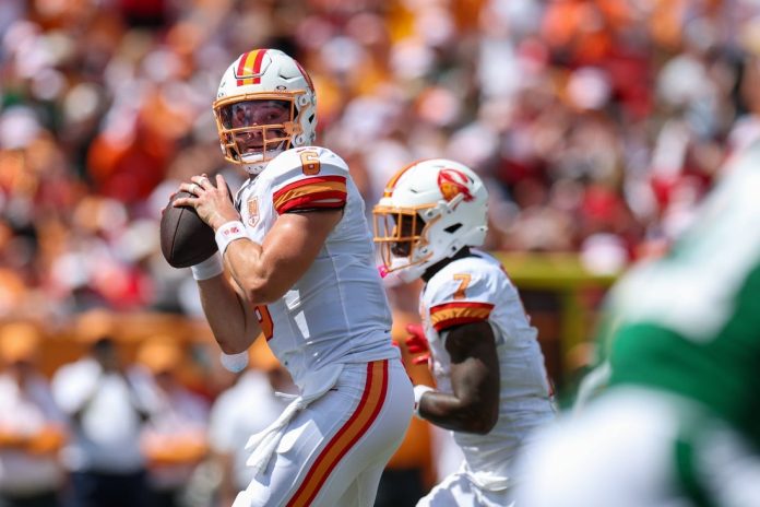 Jamel Dean returned an interception for touchdown and Baker Mayfield threw a touchdown pass to Mike Evans as the Buccaneers recorded their first 3-0 start since 2005.
