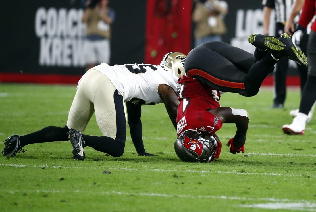 Fellow wideouts Russell Gage (hamstring) and Breshad Perriman (knee), running back Leonard Fournette (hamstring), right tackle Tristan Wirfs (abdomen) and cornerback Zyon McCollum (hamstring) were limited in practice on Friday. All are considered questionable to face the Saints.
