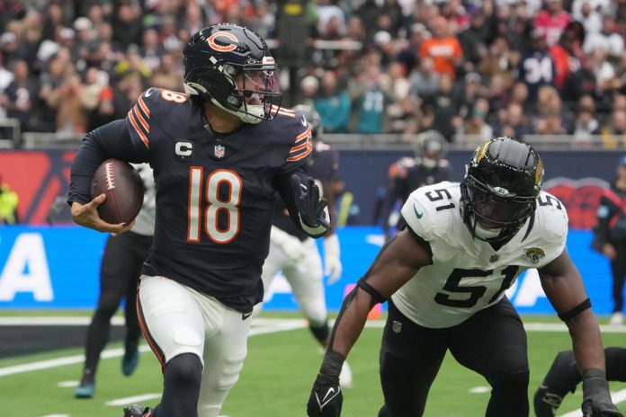 Rookie Caleb Williams tossed a career-best four touchdown passes to lead the Chicago Bears to a 35-16 victory over the Jacksonville Jaguars on Sunday in London.