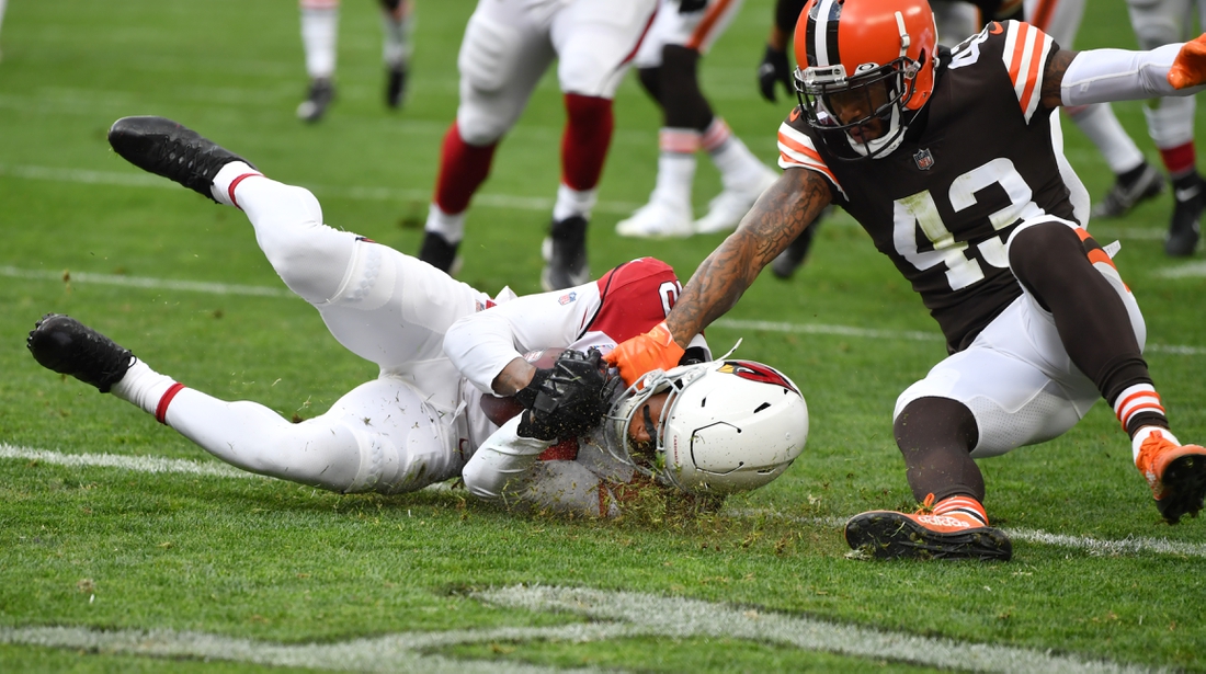 Kyler Murray completed 20 of 30 passes for 229 yards and four touchdowns and DeAndre Hopkins hauled in a pair of scores as the Cardinals (6-0) cruised despite the absence of head coach Kliff Kingsbury, who missed the game to COVID-19 protocol. It was the Cardinals’ fifth straight win against the Browns (3-3).