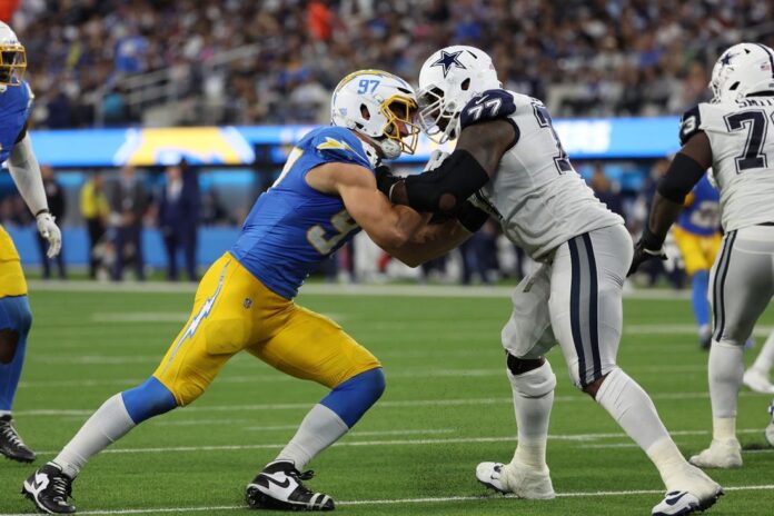 The Chargers ruled out four players on Friday — safety Alohi Gilman (heel), cornerback Deane Leonard (hamstring), defensive lineman Otito Ogbonnia (knee) and receiver Jalen Guyton (knee). Safety Derwin James Jr. (ankle) and linebacker Amen Ogbongbeminga (groin) are questionable.