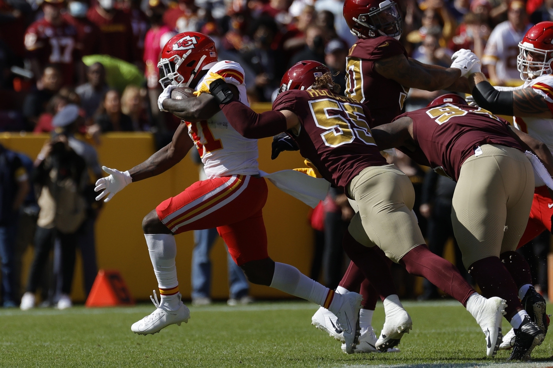 A fumble by Mecole Hardman was converted into a touchdown and a 13-10 Washington lead at halftime. Ricky Seals-Jones slipped behind the Kansas City secondary and caught a 39-yard touchdown pass from Heinicke with 1:18 remaining.