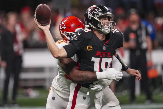 Atlanta worked down to the Kansas City 13 on its last drive of the game, and on fourth-and-1, Bijan Robinson was stuffed for a loss of 3 yards to give the ball back to the Chiefs with 51 seconds remaining.