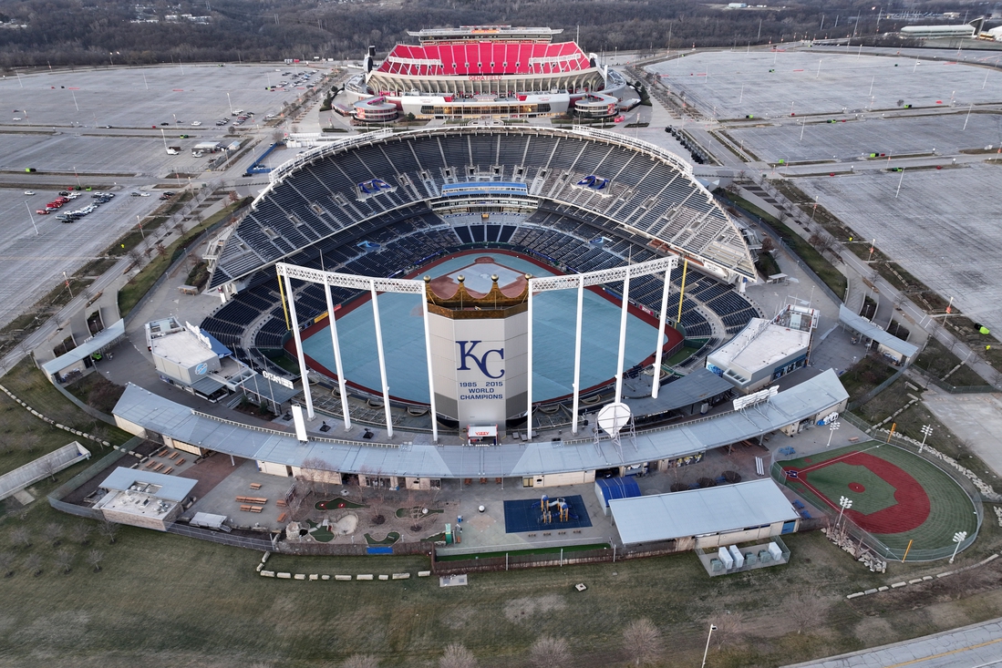 Jackson County rejected an April ballot proposal that would’ve partially funded a new stadium for the Royals in downtown Kansas City and provided funds for the Arrowhead renovation. At present, the Royals’ home park — Kauffman Stadium — and Arrowhead Stadium sit side-by-side separated by a parking lot.
