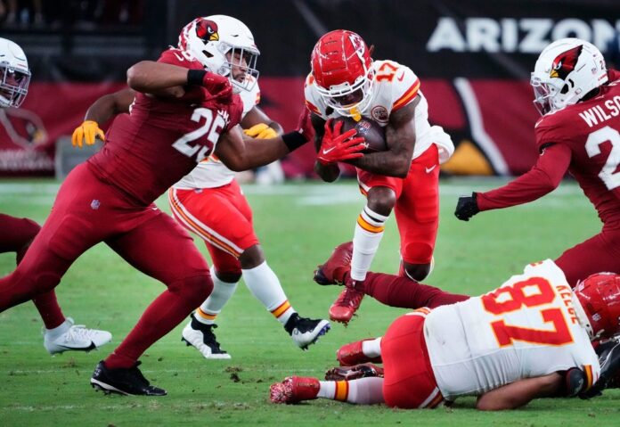 The Kansas City Chiefs rolled up 504 yards of offense — including nearly 400 through the air — in a 38-10 preseason blowout of the host Arizona Cardinals on Saturday night.
