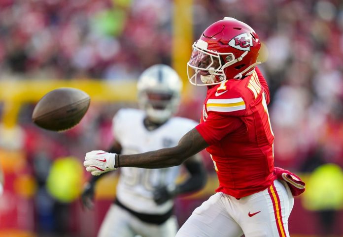 Chiefs receiver Xavier Worthy exited after the third offensive play of Kansas City’s Friday night game against the Los Angeles Chargers with a right shoulder injury. After initially being labeled questionable to return, he was later ruled out.