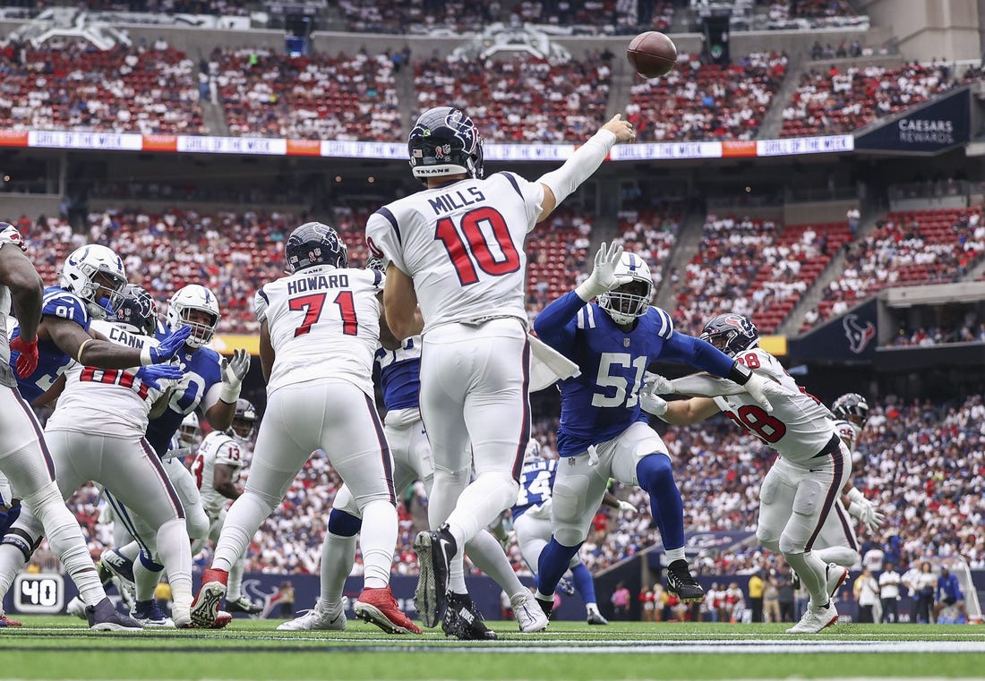 Davis Mills passed for 240 yards and two touchdowns for the Texans, whose offense stalled in the fourth quarter and overtime. Houston totaled 299 yards compared to the Colts’ 517 yards.