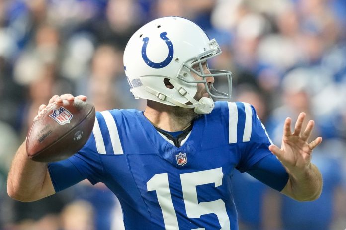 The Indianapolis Colts will stick with Joe Flacco at quarterback for at least this Sunday’s game at the New York Jets.