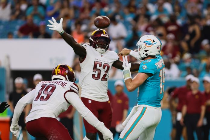 The Washington Commanders on Tuesday cut former first-round pick Jamin Davis, who had moved from linebacker to defensive end this season under first-year coach Dan Quinn.