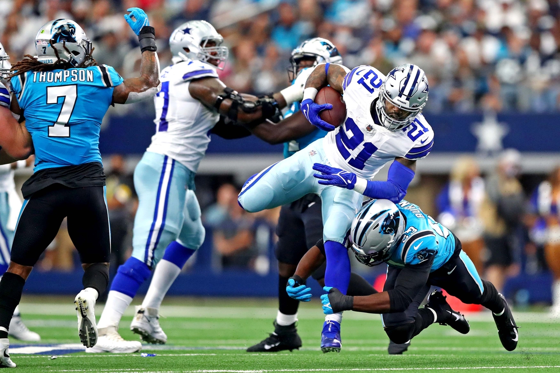 Elliott opened the scoring on a 1-yard run. The Panthers pulled even when Darnold faked a pitch and ran 1 yard for a first-quarter touchdown.