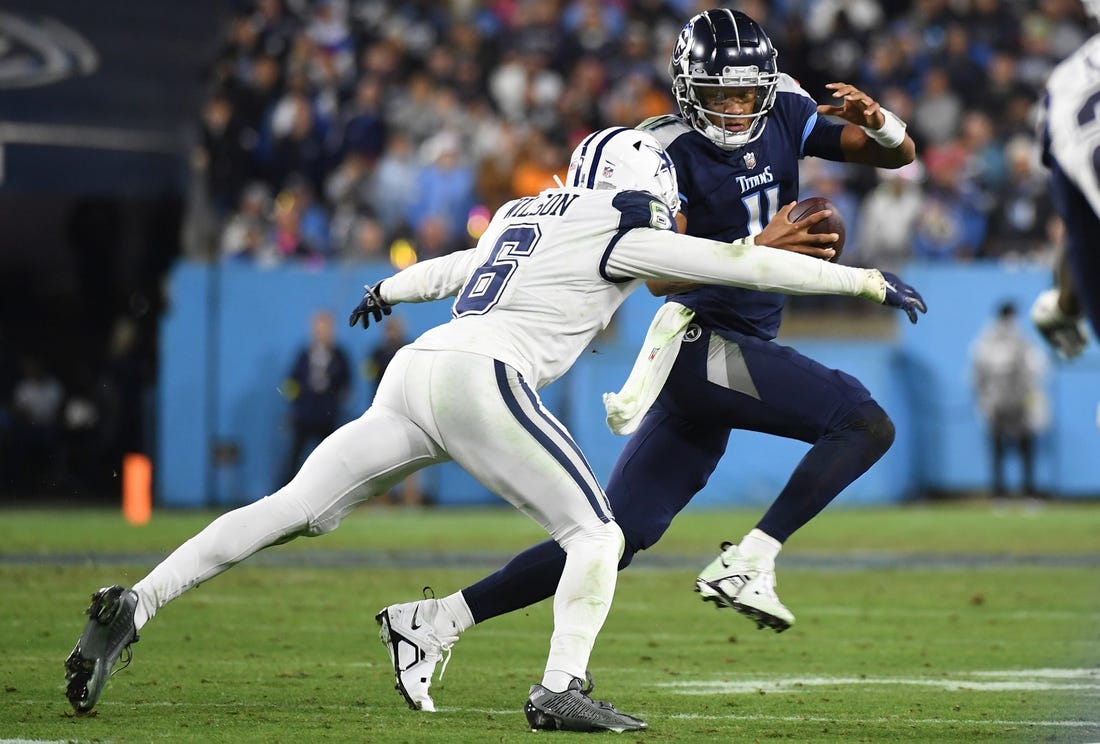 The Titans responded with a 14-play, 71-yard drive in which Dobbs tossed a 7-yard scoring pass to Woods with 2:04 left in the third quarter. It was the 27-year-old Dobbs’ first NFL touchdown pass.