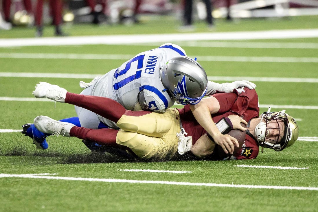 Harvey, 28, led the league with 78 tackles in 10 games and made the inaugural All-UFL team.