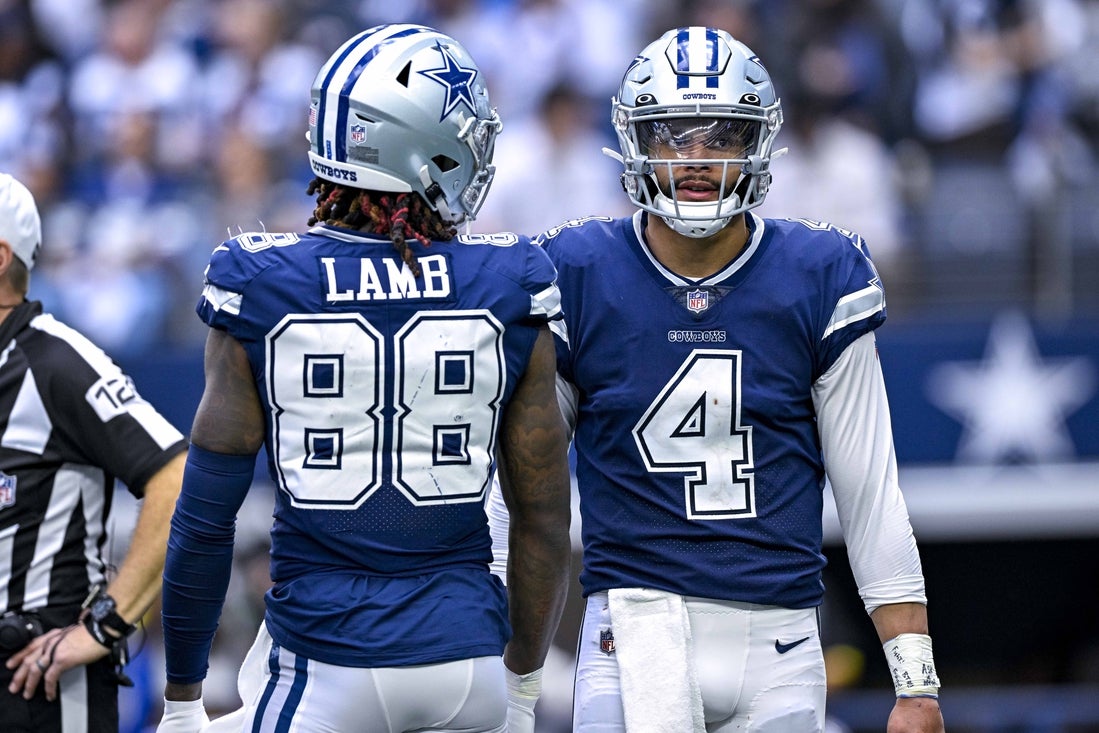 Lamb, who lined up at running back, was dropped for the loss of 1 yard but the attempt didn’t count as an official carry because of offsetting penalties. He had zero receptions in the game when he exited.