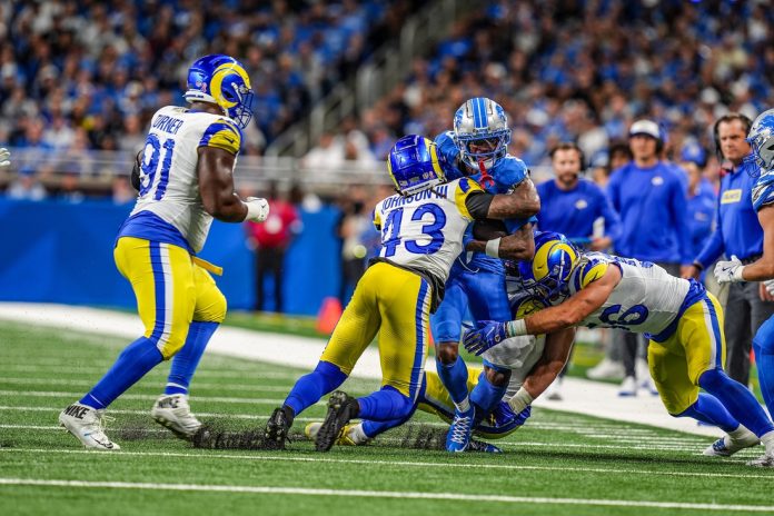 Detroit’s Jared Goff passed for 217 yards with a touchdown and an interception. Jameson Williams caught five passes for 121 yards and a touchdown for the Lions (1-0), who also defeated the Rams, 24-23, during the wild-card round of last season’s playoffs.