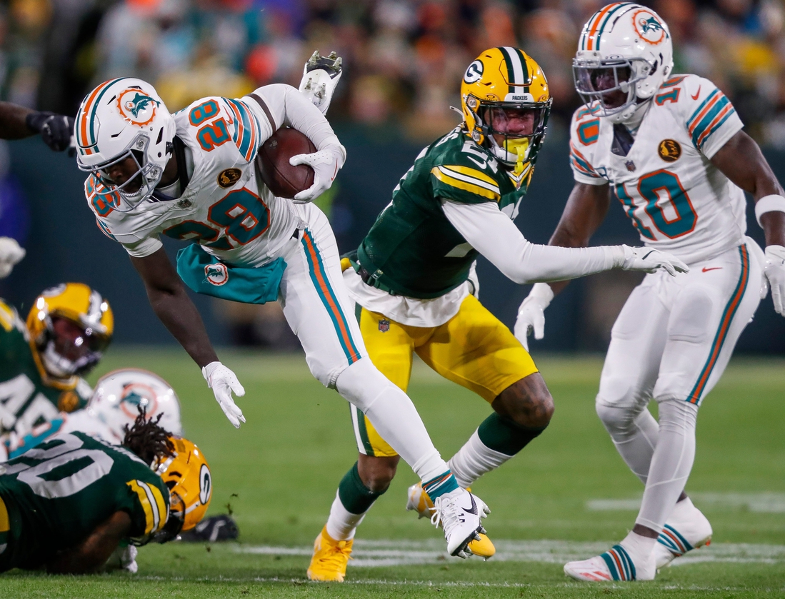 Rodgers has played every game while his much younger Dolphins counterpart, Tua Tagovailoa, 26, missed time with yet another concussion. Tagovailoa has been limited to eight games, and Miami is 4-4 in those contests. Since he returned from injury, the Dolphins have scored at least 23 points in five of six games.
