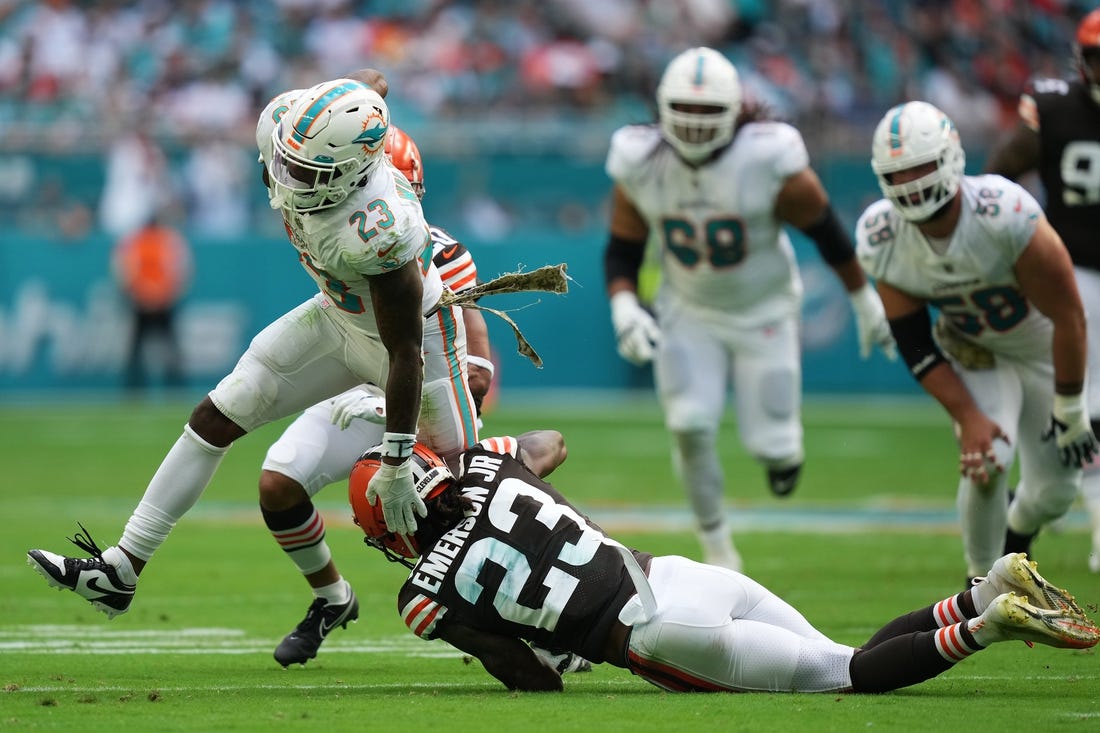 The Browns (3-6) finished with 112 yards on the ground, but most of that came when Nick Chubb broke a tackle and raced down the sideline for a 33-yard touchdown that cut Miami’s lead to 30-17 with 13:09 to play.