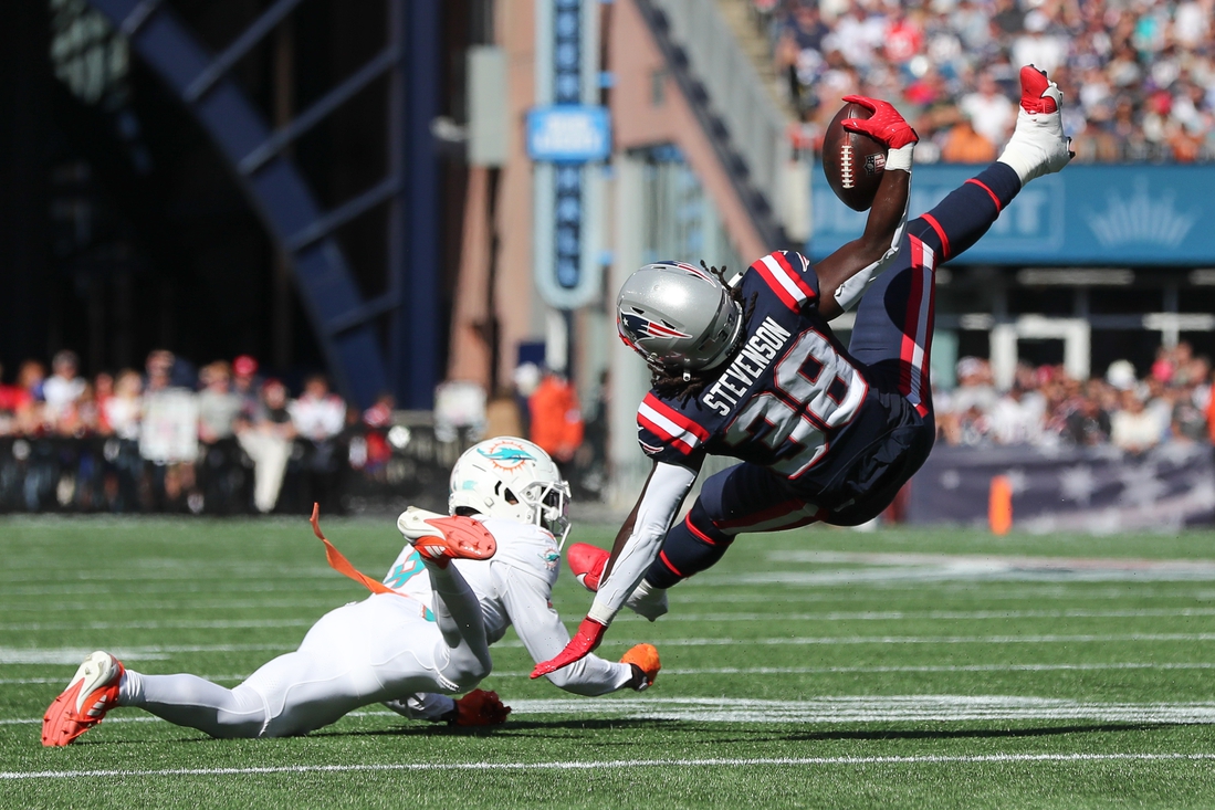 New England later made the most of a Christian Gonzalez interception that set it up at the Dolphins 43. Four plays after the pick, Stevenson rushed for a 33-yard touchdown to put the Patriots ahead 7-3 with 3:55 left in the first quarter.