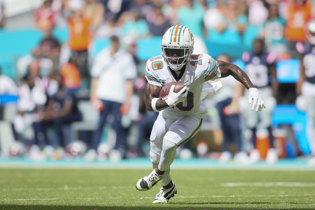 Miami Dolphins receiver Tyreek Hill on Sunday became the first player to reach 1,000 receiving yards in the first eight games of the season during the NFL’s Super Bowl era.