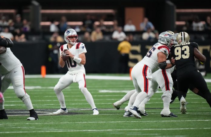 Drake Maye passed for 261 yards and three touchdowns and the visiting New England Patriots defeated the New Orleans Saints 25-19 on Sunday afternoon.