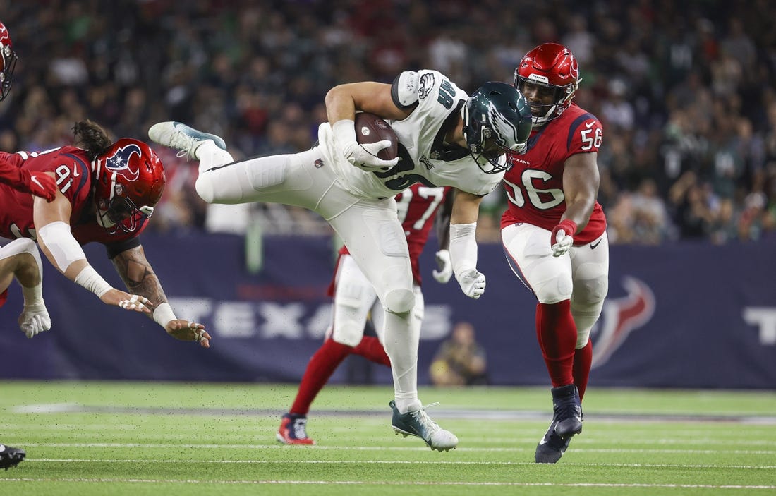 Hurts completed 21 of 27 attempts and overcame a first-half fumble while playing in his hometown for the first time as a professional. He was steady in stewarding an Eagles offense that encountered relatively few obstacles from the Texans (1-6-1) while amassing 360 total yards.
