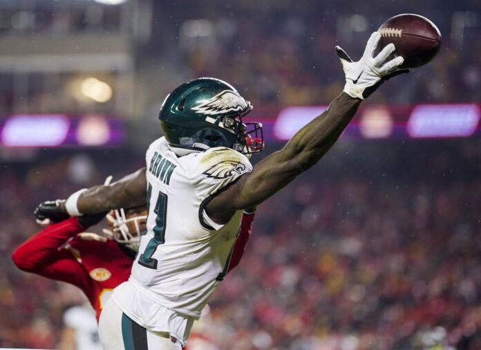 Through two games in November, Brown has eight receptions for 74 yards and one score — including just one catch for 8 yards in Monday night’s 21-17 win at Kansas City. Brown and quarterback Jalen Hurts had an animated chat on the sidelines after a botched play led to a Chiefs interception in the second quarter.