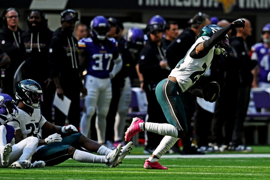 The Eagles are also dealing with a thigh injury to their other starting safety, Reed Blankenship, who was limited at practice on Wednesday. Safety Sydney Brown, who started one of 11 games played this season and seven of 36 in his career since 2023, is likely to replace Mukuba in the lineup.