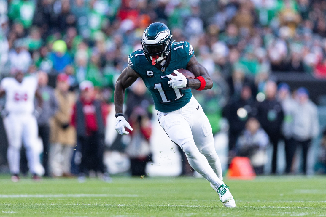 DeVonta Smith and newcomer Jahan Dotson should see a larger workload with Brown out versus the Falcons (0-1).