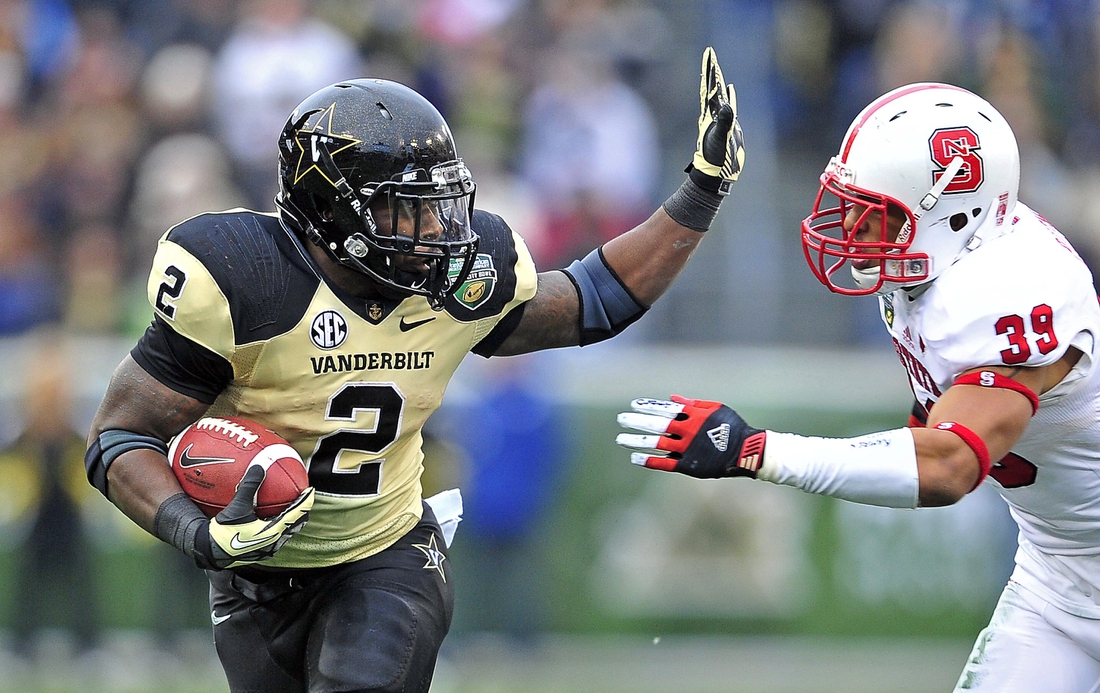 He rushed for 3,143 yards and 30 touchdowns at Vanderbilt from 2011-12.