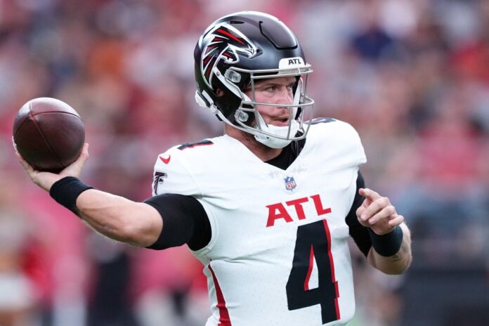 Desmond Ridder, who began the season as Atlanta’s starter, entered and guided the Falcons on a touchdown drive on their next possession. Ridder scored with his legs from 9 yards out, but his two-point conversion pass failed, making it 23-22.