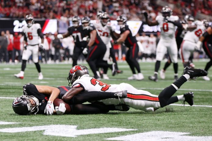 Falcons No. 1 receiver Drake London is scheduled to undergo tests to determined the severity of his right shoulder injury, but head coach Raheem Morris had no additional details following Sunday’s loss to the Buccaneers.