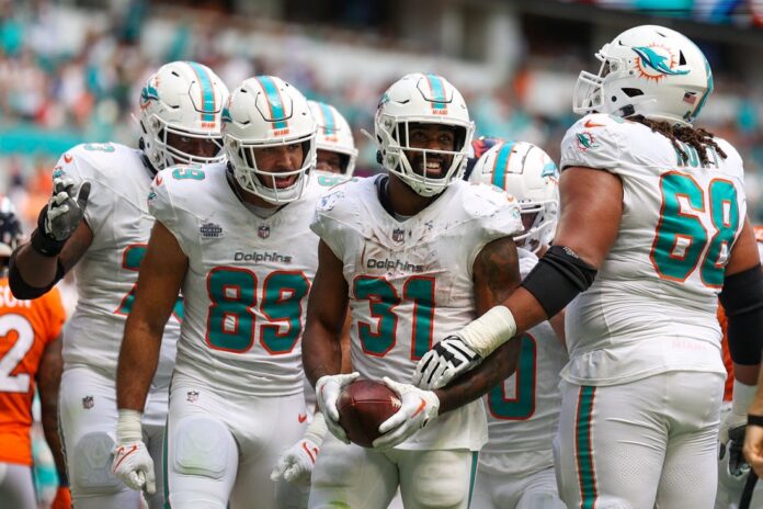 The Dolphins scored at least 14 points in all four quarters with 30 first downs, 350 rushing yards and 376 passing yards.