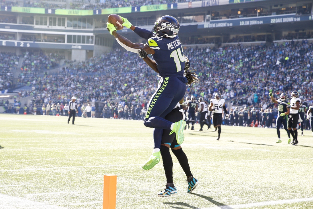 Seattle’s Tyler Lockett made 12 receptions for 142 yards and DK Metcalf added six catches for 43 yards and two touchdowns. Alex Collins rushed for a game-high 44 yards on 10 carries.