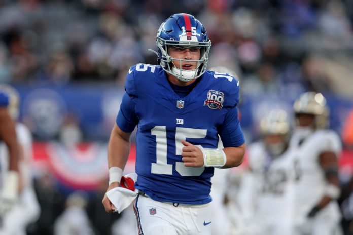 New York Giants quarterback Tommy DeVito suffered a concussion late in the second quarter and did not return to Sunday’s game against the visiting Baltimore Ravens in East Rutherford, N.J.