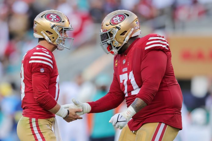 Williams plays a vital role at left tackle, protecting the blind side of quarterback Brock Purdy and using his power to blast open running lanes for running back Christian McCaffrey.