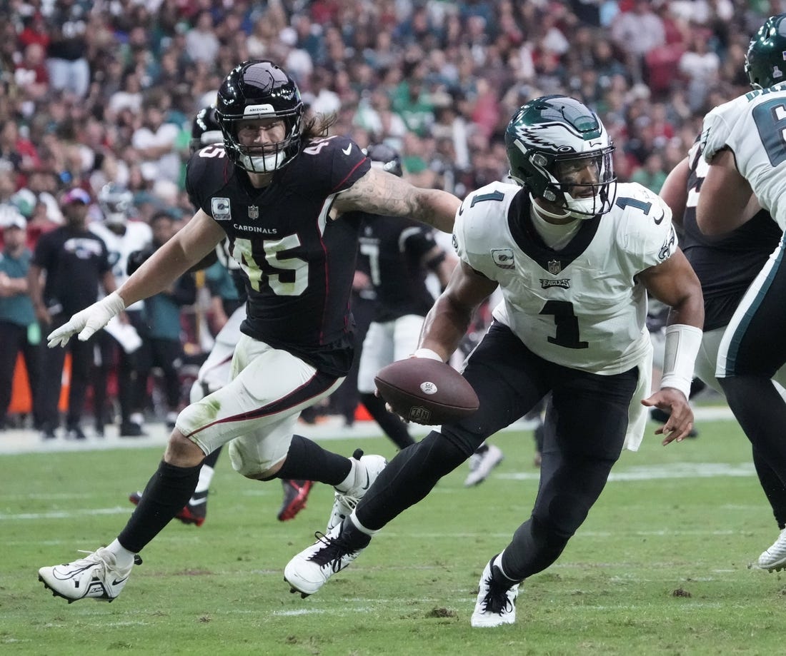 With no timeouts, Kyler Murray drove Arizona to the Philadelphia 25 with 22 seconds left, but Matt Ammendola missed a 43-yard field-goal attempt wide right. Ammendola was making his Cardinals debut, signed this week with Matt Prater dealing with a hip injury.
