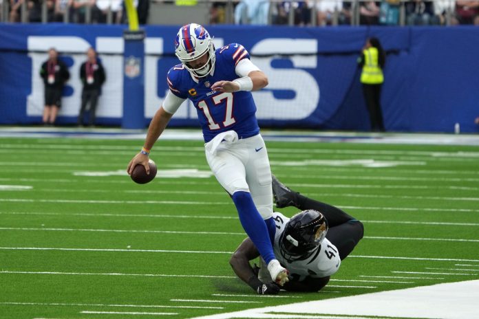 The offense is clicking despite the offseason trade of receiver Stefon Diggs to the Houston Texans. Two other key performers also departed and now play for the Jaguars — center Mitch Morse and wideout Gabe Davis.