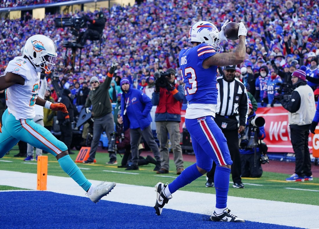 Gabe Davis added a 23-yard catch in the back-left corner of the end zone to restore the Bills’ double-digit lead, 34-24, with 2:07 left in the third. The Dolphins traveled 75 yards on their next drive, and Jeff Wilson scored from 1 yard to cut the deficit to three with 10:53 to play, but they could not get closer.