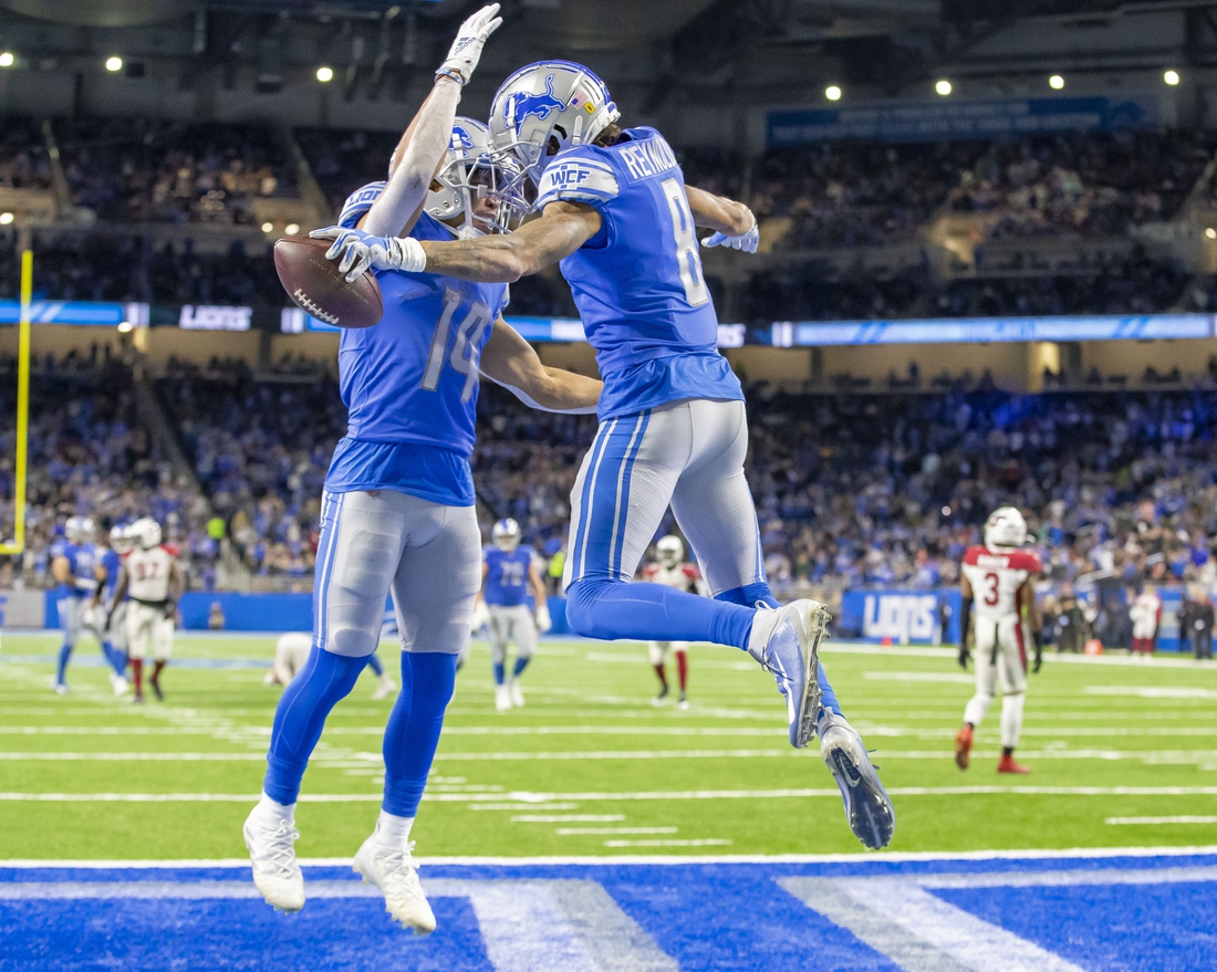 The Lions then drove 97 yards in nine plays. Goff completed three passes to St. Brown during the drive, then found Reynolds from 22 yards out for the score.