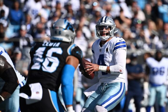 The Cowboys then put together a 12-play drive – aided by a defensive pass interference penalty and horse-collar tackle infraction on the Panthers — that resulted in Brandon Aubrey’s 30-yard field goal for a 10-0 lead early in the second quarter.