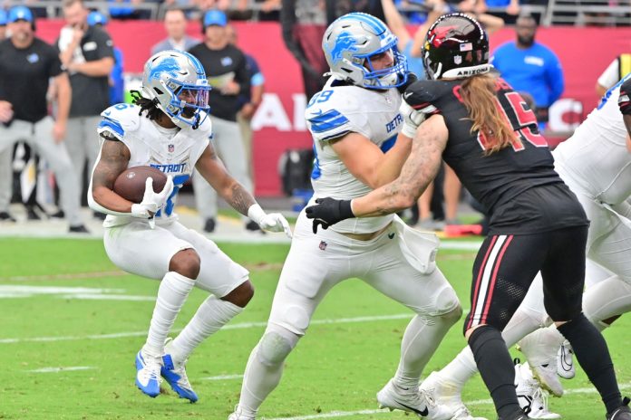 Jahmyr Gibbs rushed for 83 yards and scored a 21-yard touchdown on a hook-and-ladder play. Amon-Ra St. Brown caught seven passes for 75 yards and a touchdown.