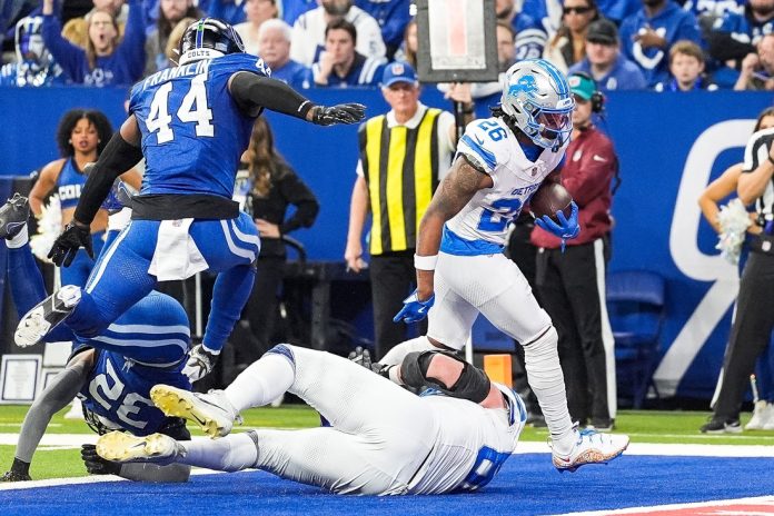 Jahmyr Gibbs rushed for 90 yards and scored two touchdowns as the visiting Detroit Lions extended their winning streak to nine games by defeating the Indianapolis Colts 24-6 on Sunday.