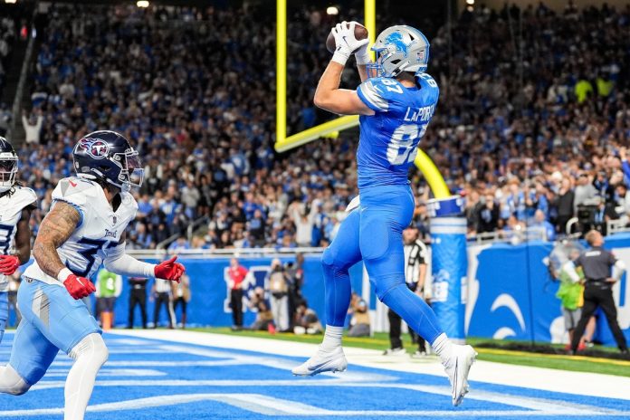 Detroit Lions tight end Sam LaPorta will miss Sunday’s game against the Jacksonville Jaguars due to a left shoulder injury.