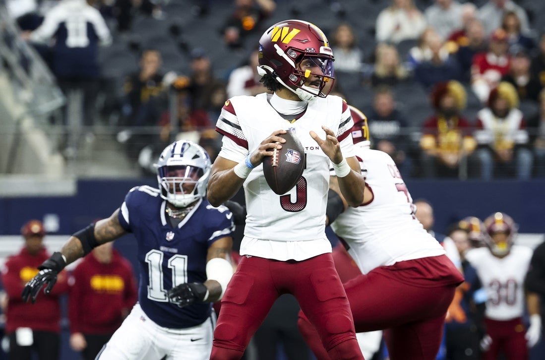 Parsons pulled down Offensive Rookie of the Year Jayden Daniels 4.5 times in two matchups with the Commanders last season to push his career total to 10.5 sacks against Washington.