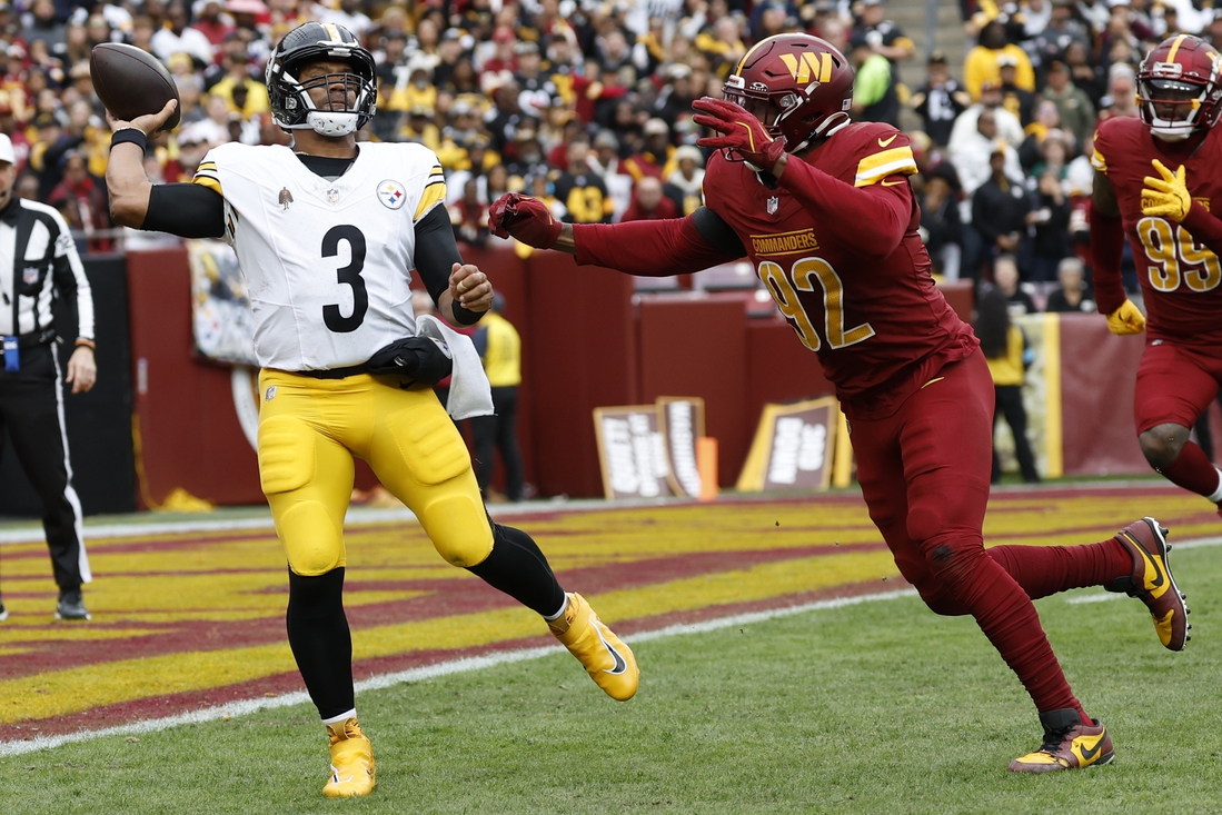 After Chris Boswell’s extra point, Washington (7-3) drove to midfield, but Jayden Daniels’ pass to tight end Zach Ertz came up a yard short on fourth-and-9. The Commanders would have gotten the ball back, but Russell Wilson drew an offside penalty on fourth-and-1 at the Washington 49 with 1:02 remaining.