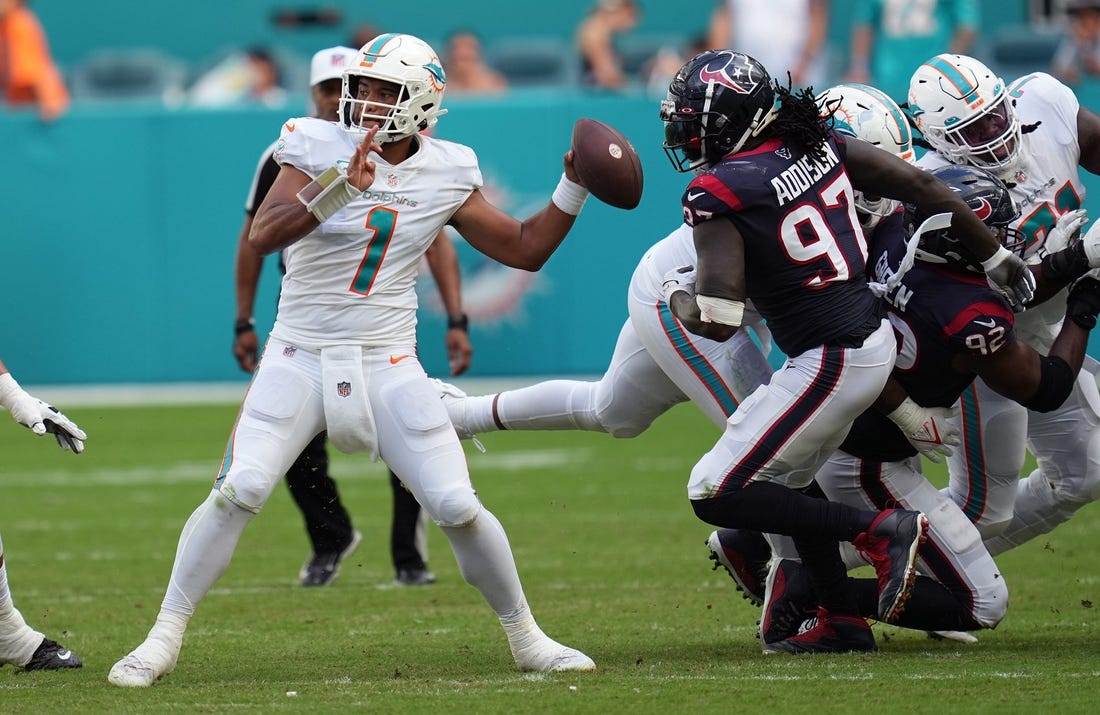 Tagovailoa has thrown for 2,564 yards and 19 touchdowns with just three interceptions. He is the third favorite for MVP at DraftKings with +500 odds, trailing just Chiefs quarterback Patrick Mahomes (-160) and Philadelphia Eagles quarterback Jalen Hurts (+350).
