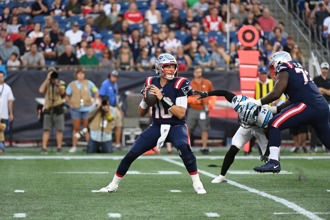 New England quarterback Mac Jones completed half of his eight passes for 61 yards as the Patriots beat the Carolina Panthers 20-10 on Friday in a preseason game at Foxborough, Mass.