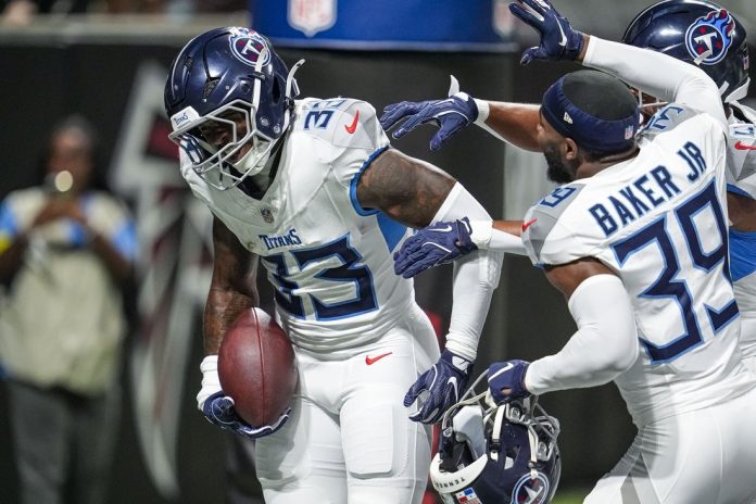 Brooks, a 25-year-old product of Michigan State with one career tackle, intercepted Falcons quarterback Easton Stick on Atlanta’s second drive of the game, putting the Falcons in an early hole. Brandon Allen staked the Titans (1-1) to a 13-3 lead late in the first half, connecting with Gunnar Helm on a 25-yard touchdown pass.
