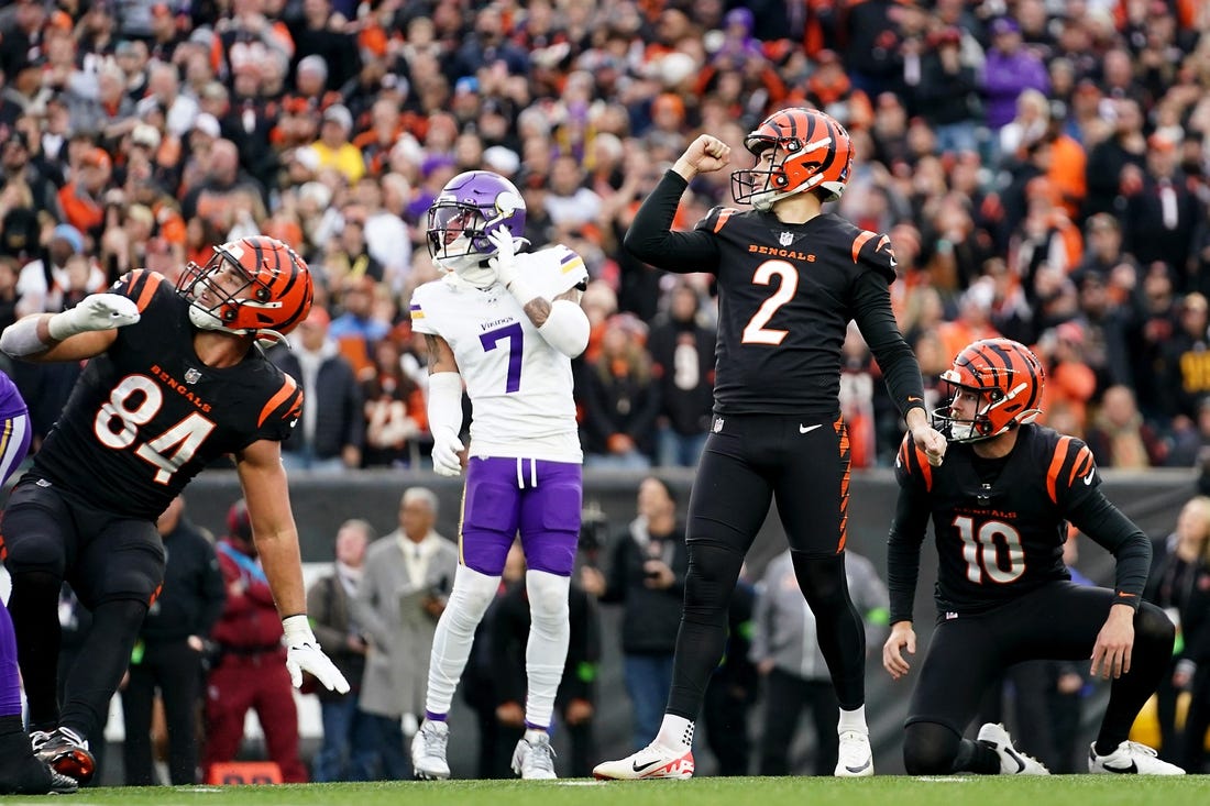 Evan McPherson booted a 29-yard field goal with 3:11 left in overtime to rally the Cincinnati Bengals past the visiting Minnesota Vikings 27-24 on Saturday.