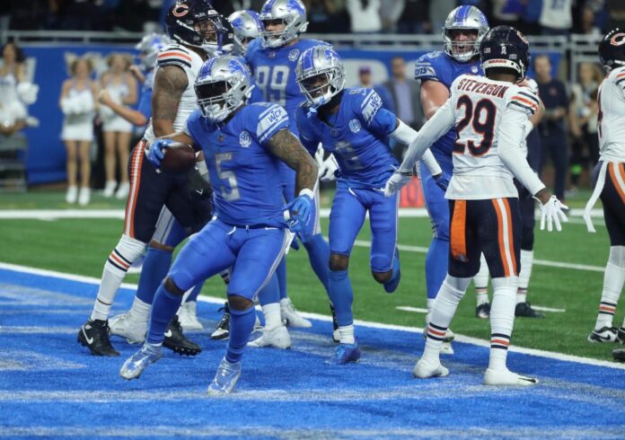 Montgomery, a former Bears running back, rushed for 76 yards. Jared Goff, who threw a season-high three interceptions, engineered two fourth-quarter scoring drives and finished with 236 yards passing and two touchdowns for Detroit (8-2).